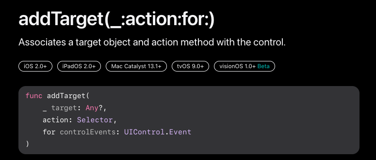 button의 addTarget 함수의 경우