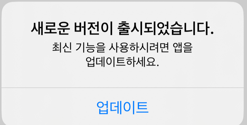 Text("최신 기능을 사용하시려면 앱을 업데이트하세요.")