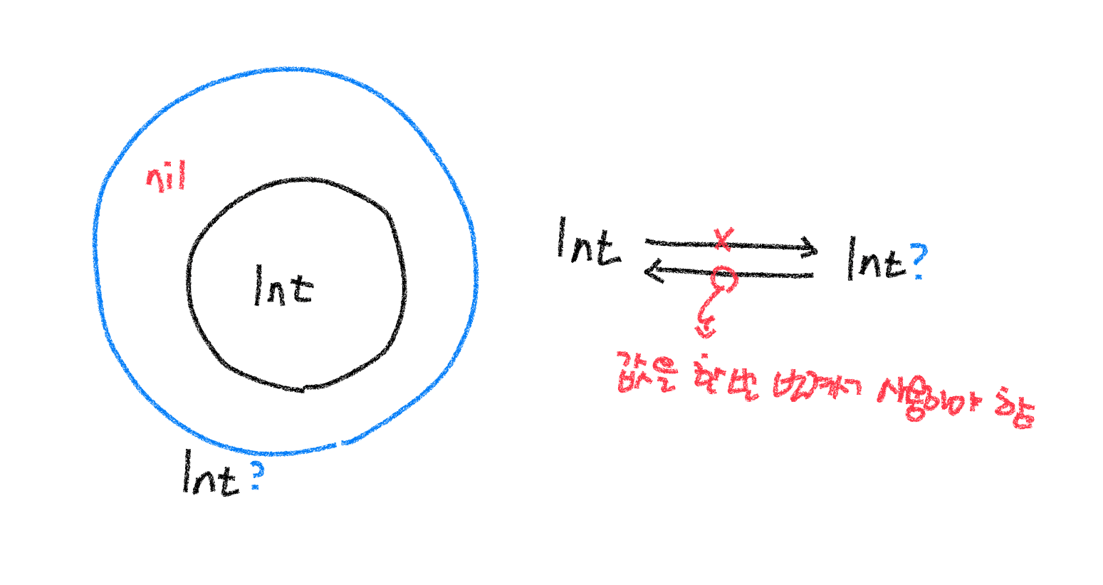 ==> 옵셔널타입과 옵셔널이 아닌 타입은 서로 다른 타입이다.