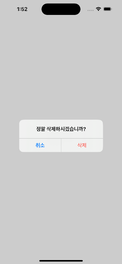 | 항목 | Alert | Action Sheet (confirmationDialog) |