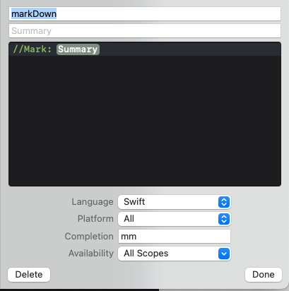 📘 Swift 기능 정리: 코드 스니펫(Code Snippet)