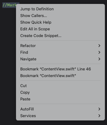 XCode에서 스니펫으로 저장하고 싶은 코드를 선택해 드래그 후 우클릭