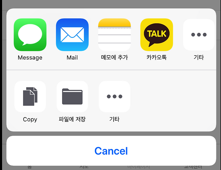 ex. 이미지, 텍스트, URL, 파일 등을 메시지, 메일, 에어드롭, 기타 앱으로 공유하고 싶을 때 사용