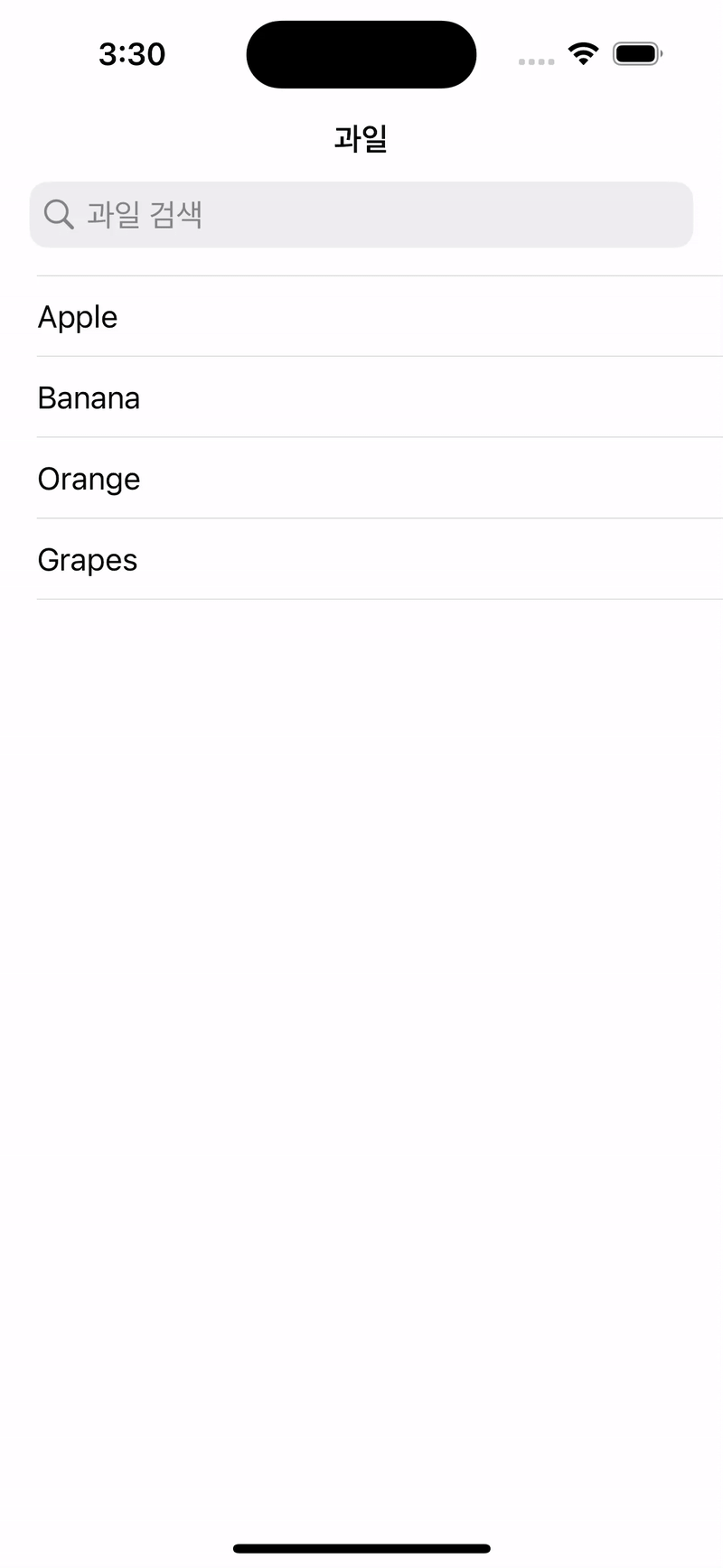 navigationItem.hidesSearchBarWhenScrolling = false // 검색바가 기본으로 보이도록 설정