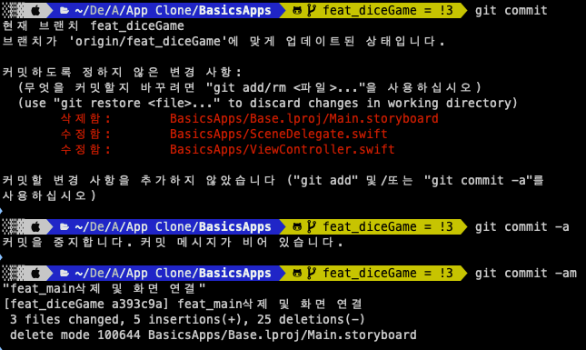 아무런 생각없이 storyboard 지우고 commit 하려고 하자 다음과 같은 오류가 발생하였다.